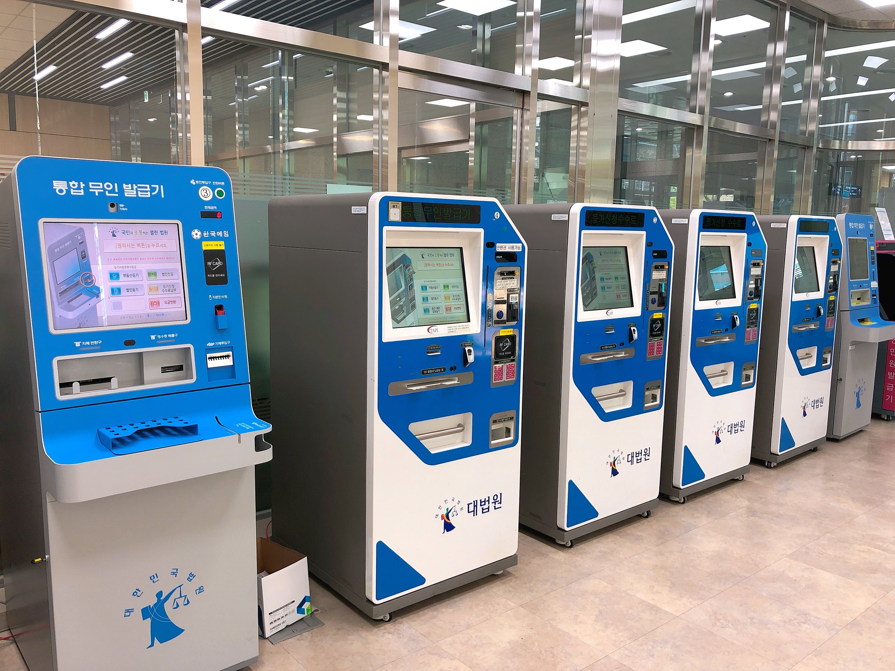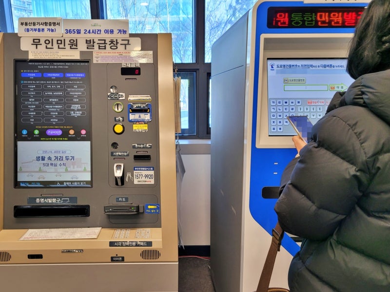 서우청구 공무원종합청사 출입 시 방역수칙에 따라 마스크를 착용하고 체온을 측정한 후 좌측으로 이동하면 무인민원신청발급기를 만나실 수 있습니다.