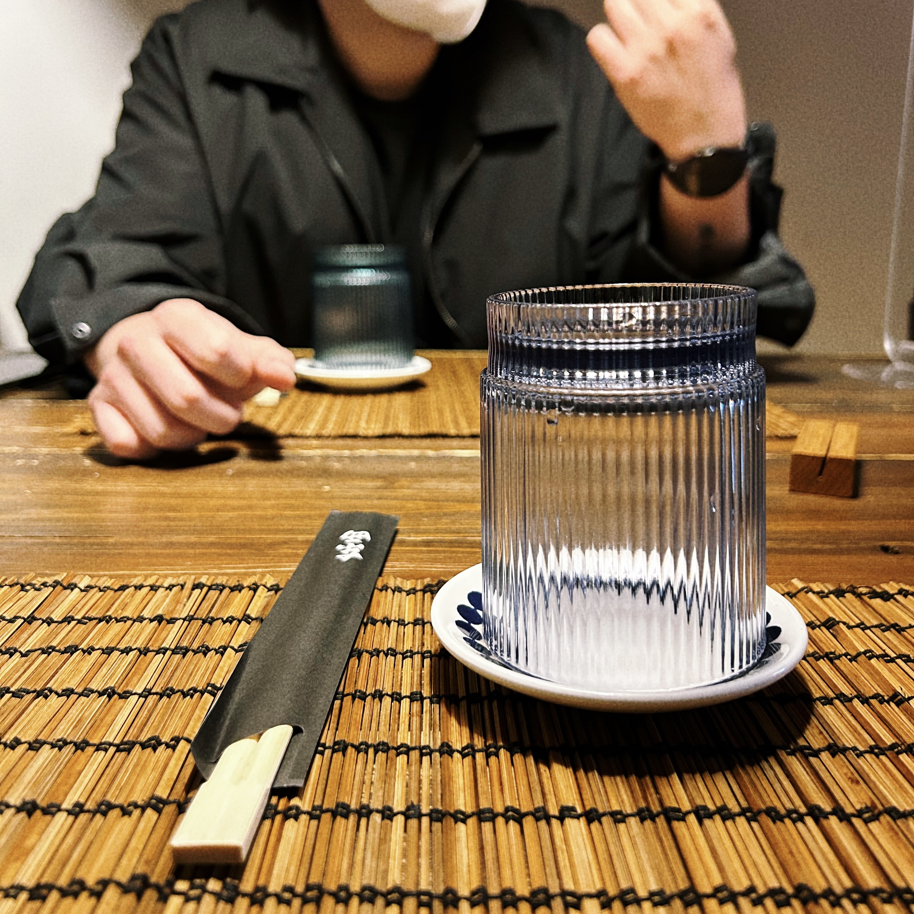 그리고 자리에 앉으면 간장, 물컵, 젓가락이 준비되어 있어요!