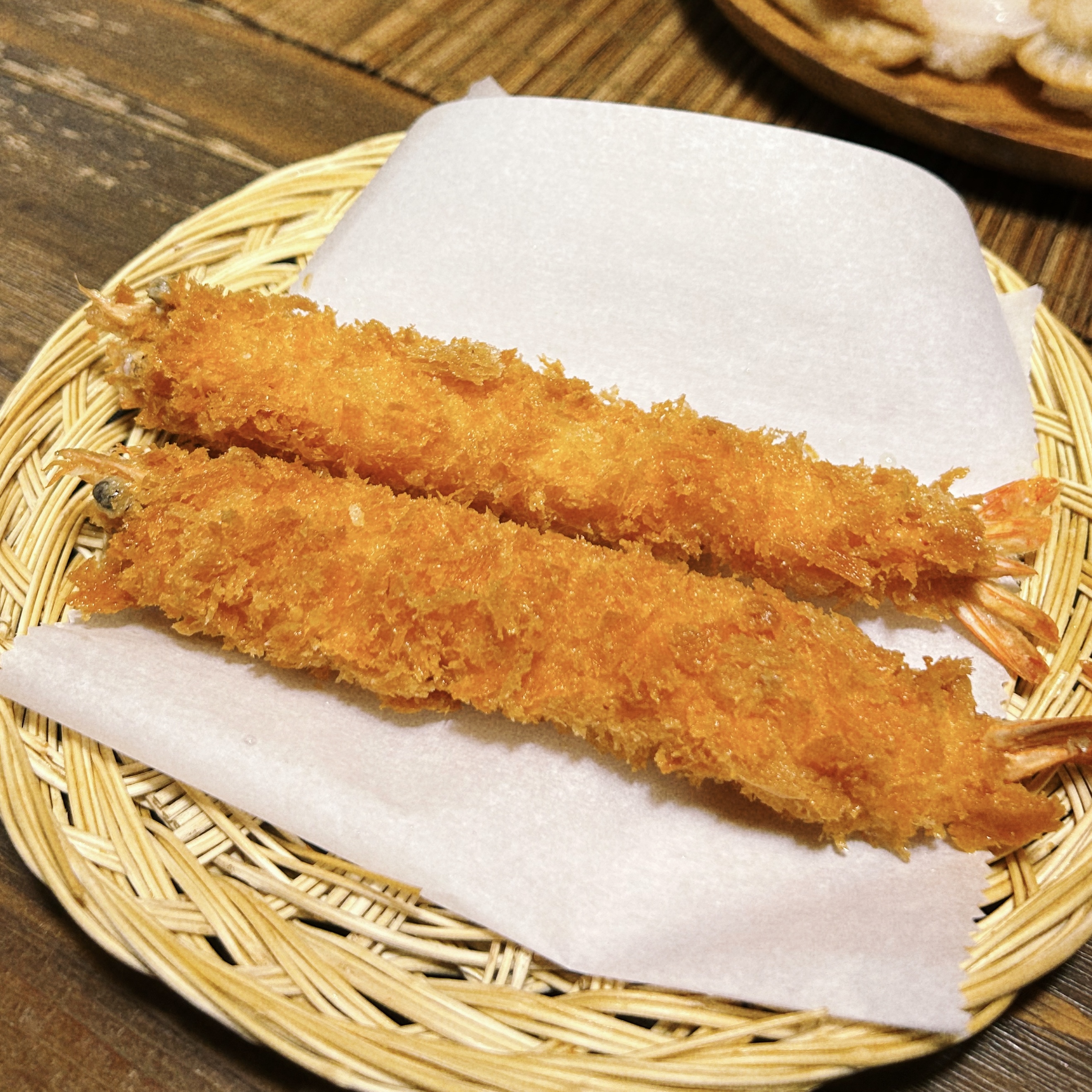 아주 바삭하게 튀긴 새우튀김이 나옵니다!
