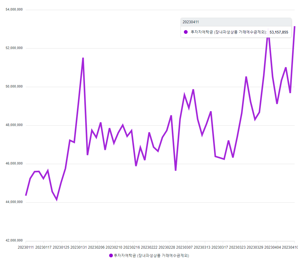 오늘 고객 예치금3조4760억원 증가한 53조1600억원이다.