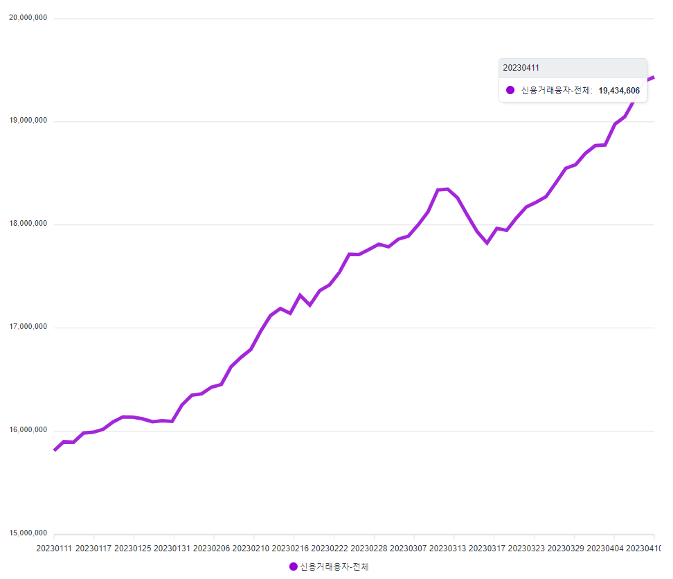 오늘의 크레딧 잔액401억 증가한 19조4300억으로 집계됐다.